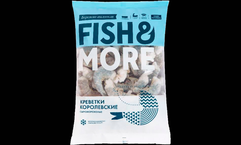 Размер 21 / 25, без головы в панцире, свежемороженные, производитель Индия, бренд "Fish&More".